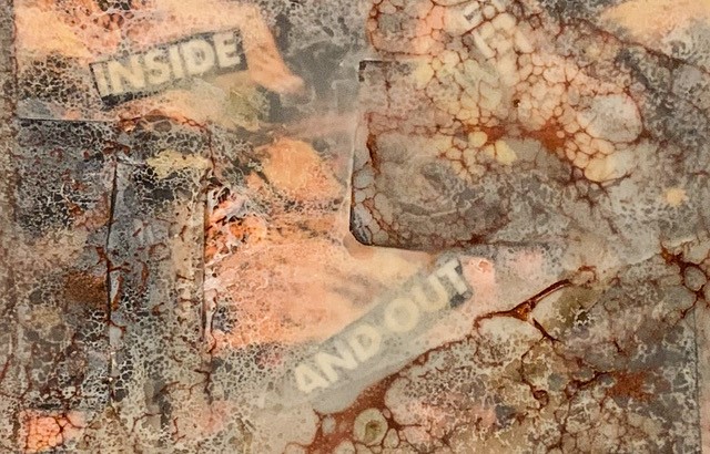 INSIDE AND OUT Encaustic pigmented wax, collage, burnt shellac