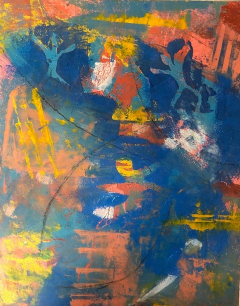 DANCING STICK FIGURES - 2024 11" x 14" Oil and cold wax