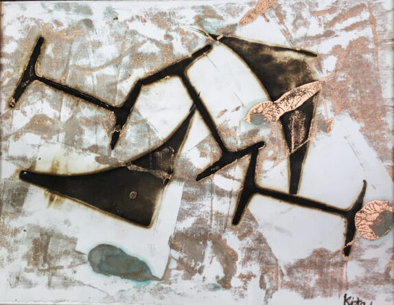 Encaustic collagraph mounted on art board